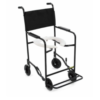 Fabricada em aço carbono, pintura epóxi, assento sanitário removível, encosto em nylon, apoio para os braços fixos apoio para os pés fixos, freios bilaterais rodas traseiras aro 06″giratórias com pneus maciços rodas dianteiras aro 06″ com pneus maciços posicionadas na parte interna da cadeira.
