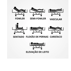 Movimentos: Fowler, Semi-Fowler, Sentado, Flexão de Pernas, Vascular e Cardíaco e Elevação do Leito
