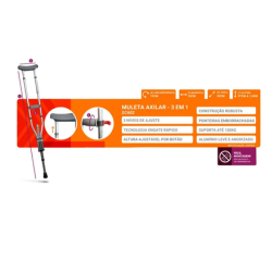 Muleta Axilar 3 Em 1 Versáteis E Ideais Para Pessoas Com Incapacidade De Descarregar Completamente O Peso Nos Membros Inferiores Devido A Várias Condições, Como Fraturas, Dor, Lesões Traumáticas, Amputações E Pós-Operatórios. Essa Muleta Têm Uma Estrutura De Alumínio E Ponteiras De Borracha, Além De Suporte Em Polipropileno Com Apoio De Mão Revestido Em Borracha Termoplástica E Fibra De Nylon Revestido De Pvc. Com 3 Níveis De Ajuste, Tecnologia De Engate Rápido E Altura Ajustável Por Botão, Proporcionam Flexibilidade E Conforto. Suportam Até 130 Kg De Peso E São Feitas De Alumínio Leve E Anodizado, Garantindo Durabilidade.